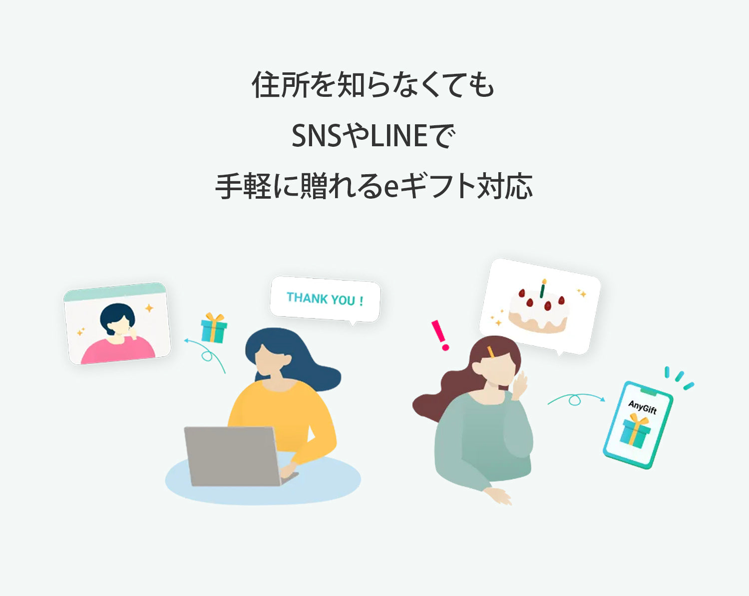 相手の住所を知らなくてもLINEやSNSで気軽にプレゼント。
